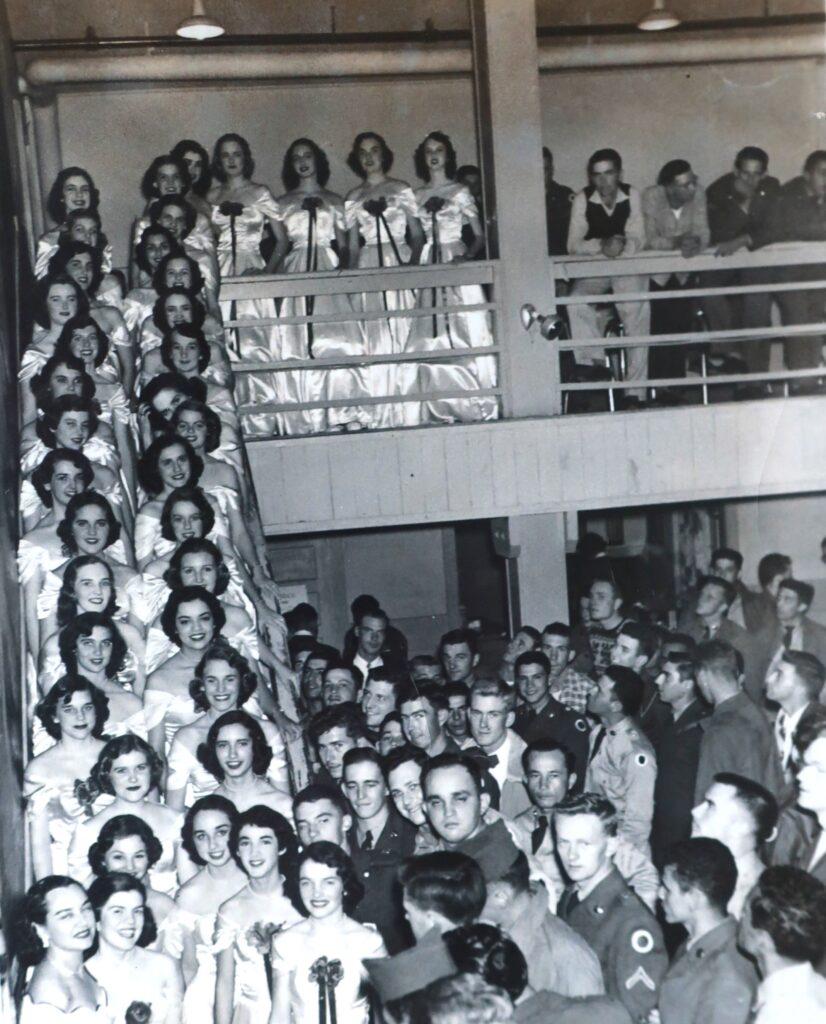 “Quick changing into white satin dresses,” Forrest continues. “Performing for thousands of appreciative soldiers. Then back to high school history class at Beaumont, Texas.”