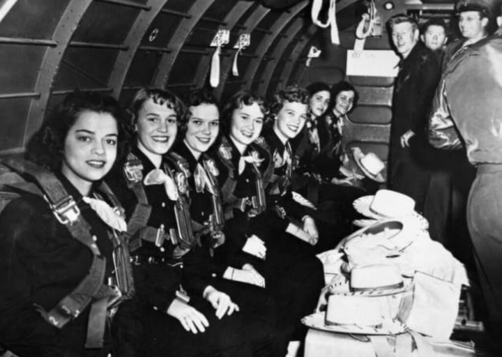 They performed in satin gowns and Texas cowgirl costumes, often flying into military zones aboard cargo planes.