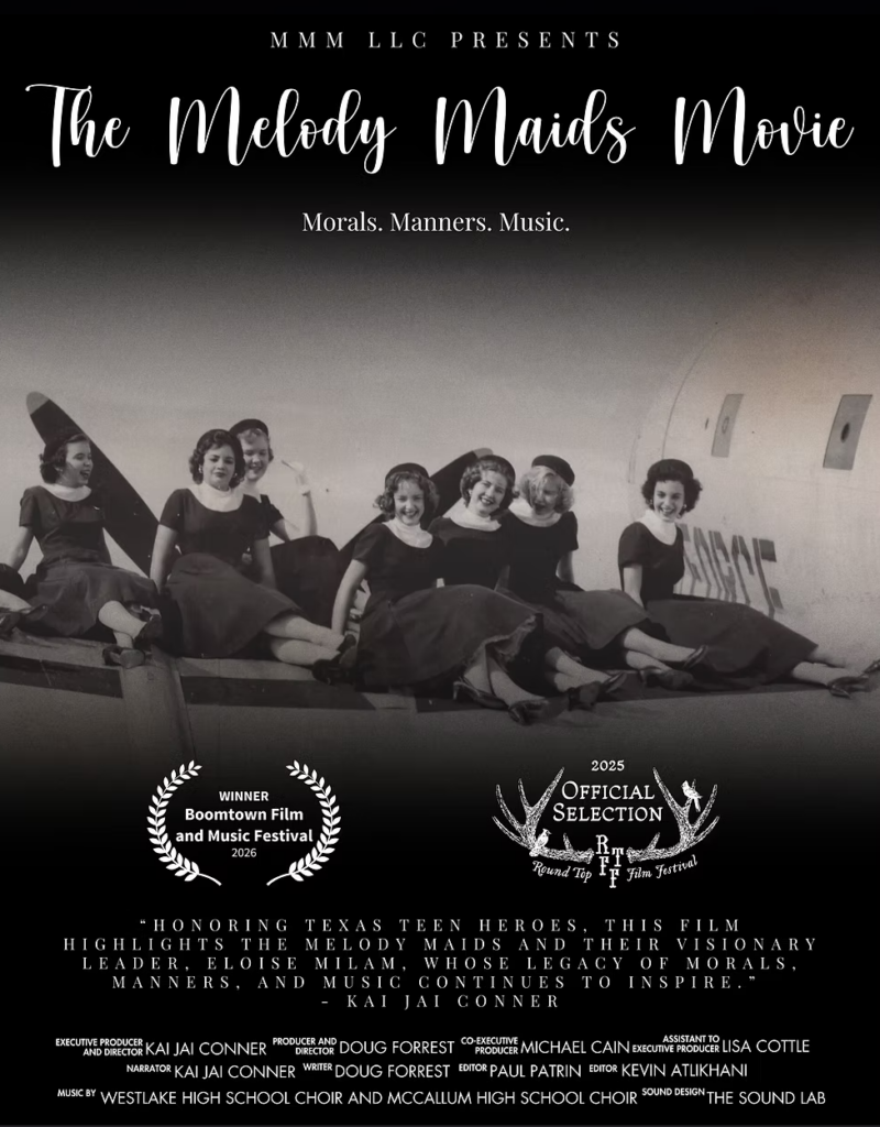 Set against the backdrop of mid-century America, this film tells the inspiring story of the Melody Maids, an all-girl singing group led by the visionary Eloise Milam. From 1942 to 1972, over 1,500 girls performed with the Melody Maids. These Texas teen heroes traveled the world performing for U.S. troops, spreading patriotism through their unwavering dedication to morals, manners, and music. Blending archival footage, personal accounts, and rich storytelling, the film shines a light on a legacy of grace, discipline, and service that continues to resonate across generations.